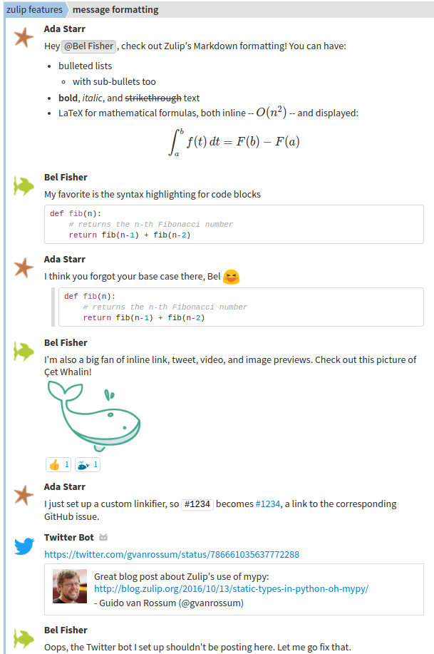 Enjoy animated GIFs with Zulip's native GIPHY integration.